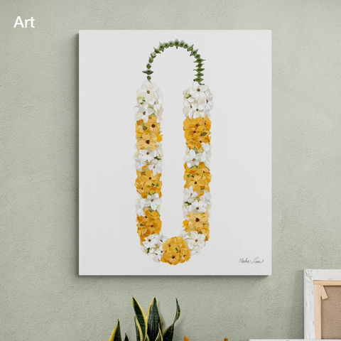5月1日は、ハワイでは『Lei Day』として知られており、ハワイの文化的な象徴であるレイを祝う日です。カラフルなレイを飾ったり、大切な人にレイを贈り合うことで、伝統と文化を称えるこの日をモチーフに描かれました。